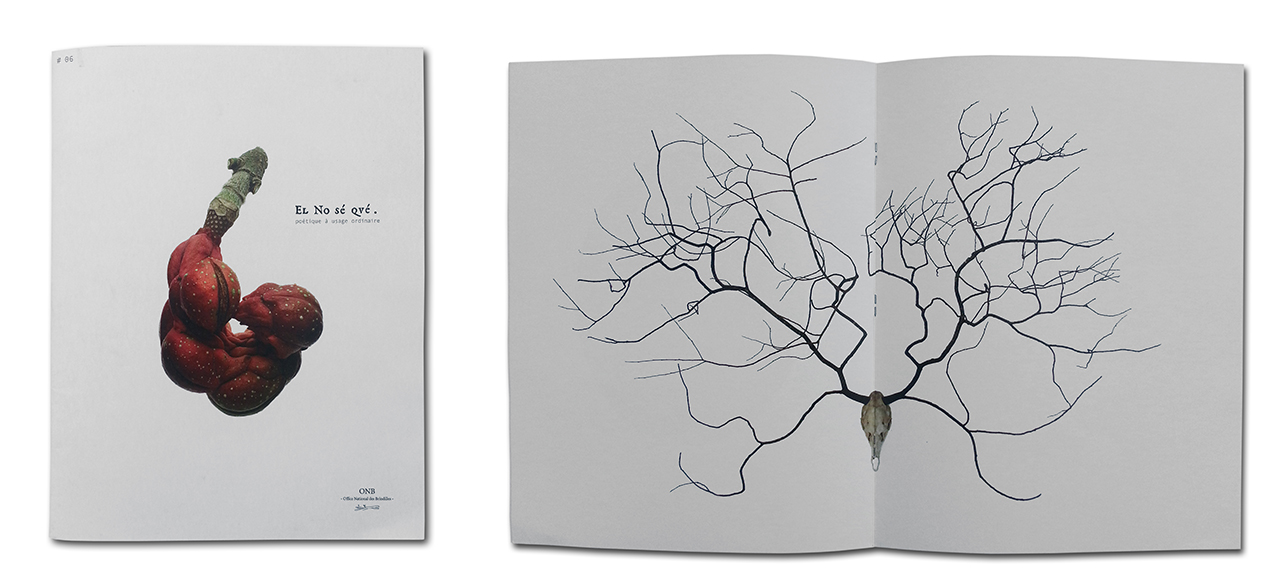 Couverture et page intérieure de El No Sé Qué #6 (2012) Revue de poétique à usage ordinaire de l’Office National des Brindilles
