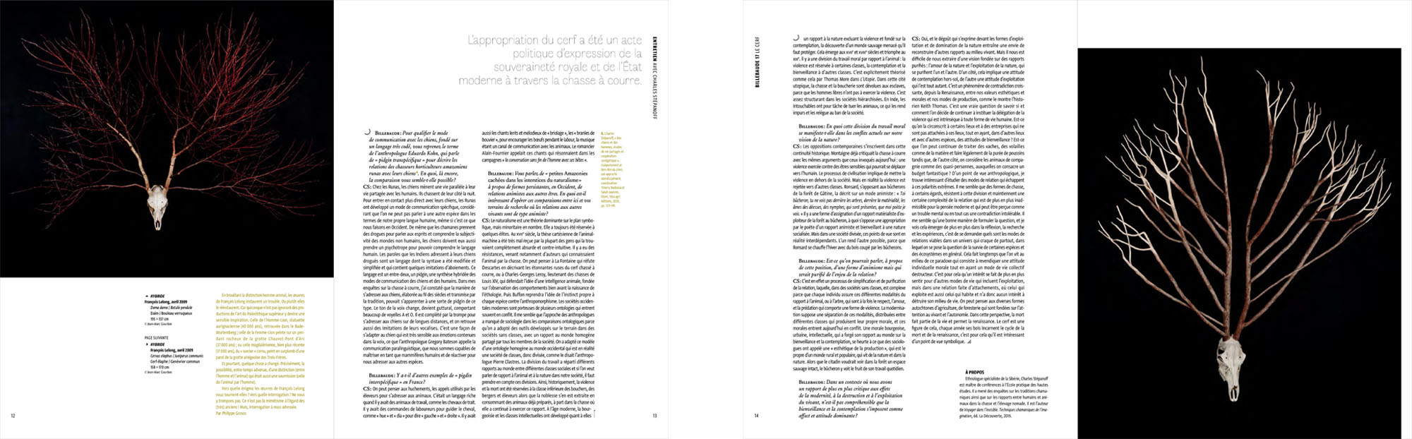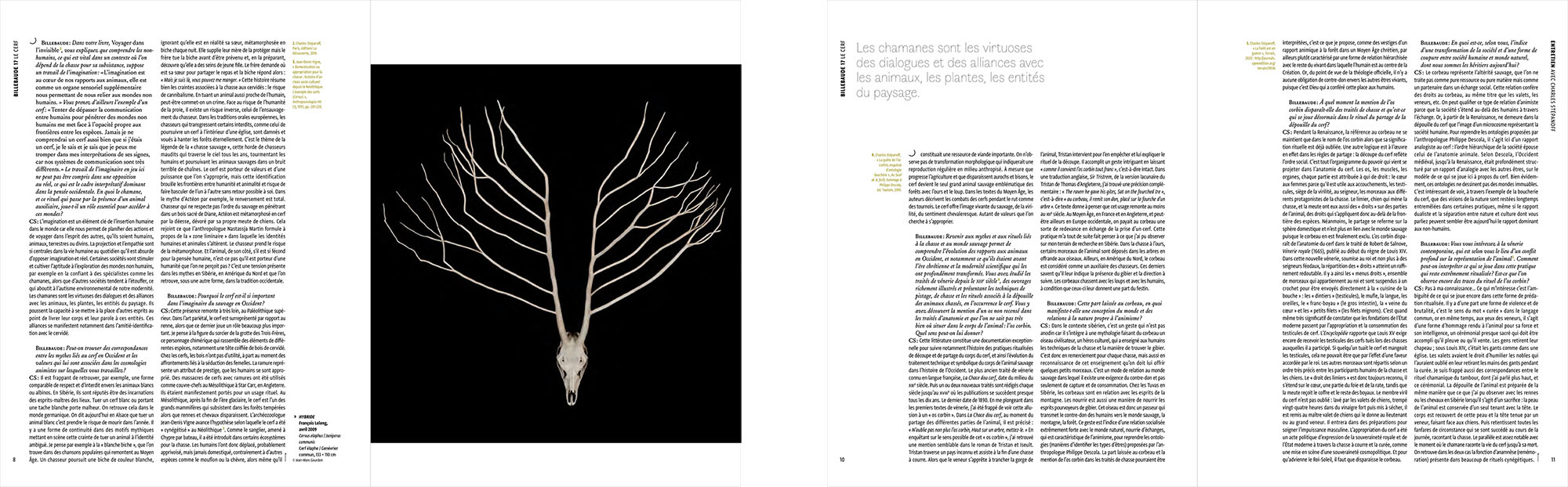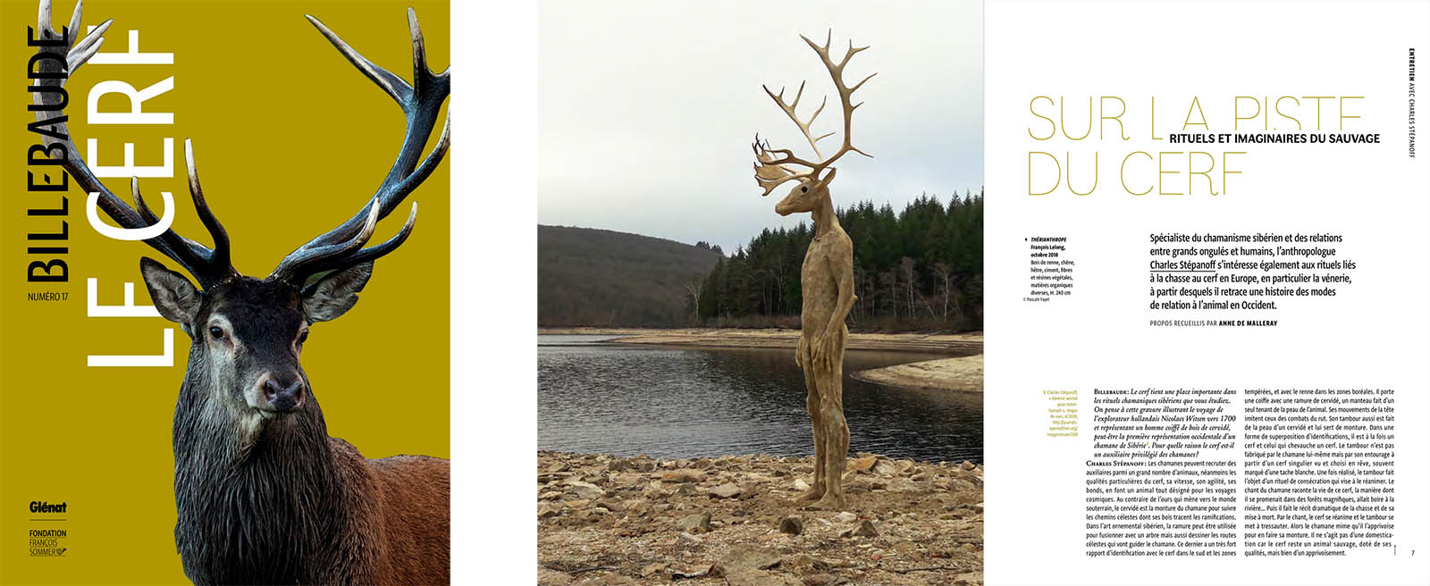 Contribution iconographique à Billebaude, revue du musée de la Chasse et de la Nature (Paris), pour un entretien avec Charles Stépanoff (anthropologue spécialiste du chamanisme sibérien, et auteur notamment de « Voyager dans l'invisible. Techniques chamaniques de l'imagination » / La Découverte, 2019)